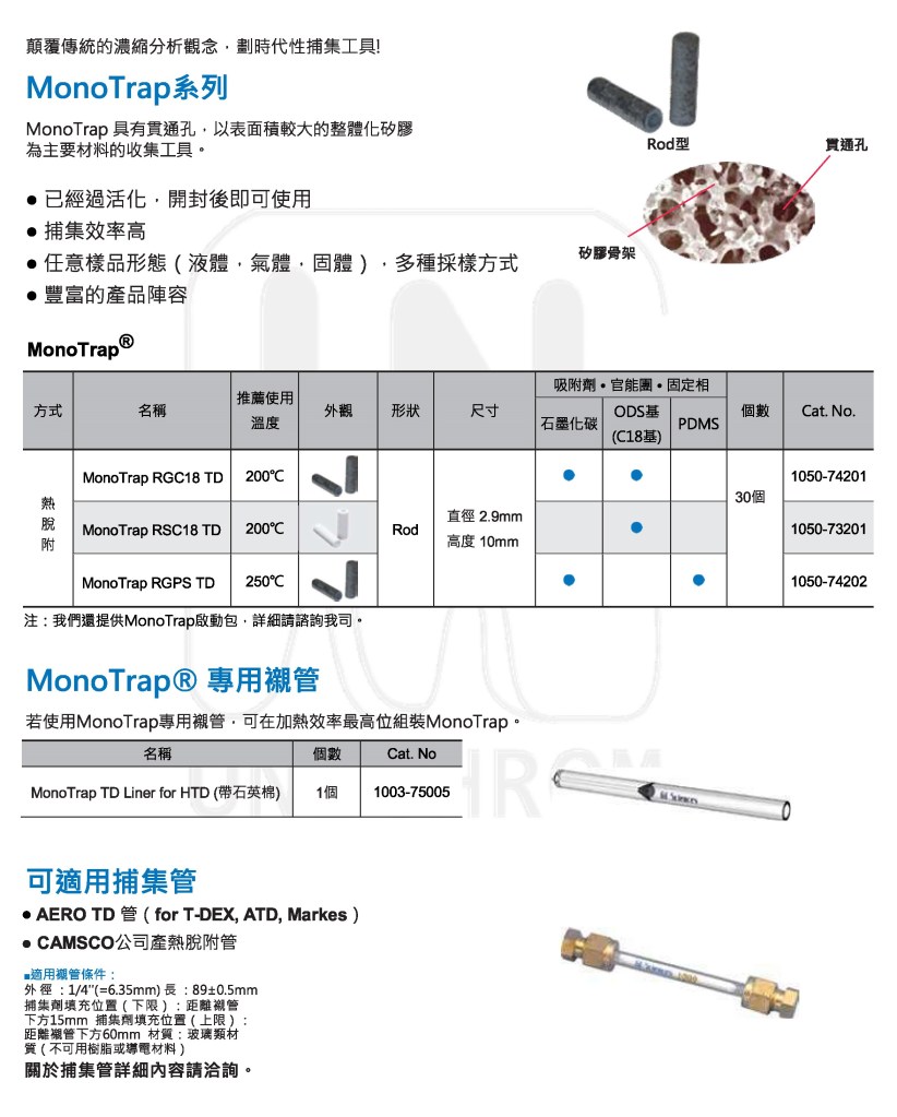HandyTD TD265 相關 – 捕集劑。捕集管。儲氣瓶(He)