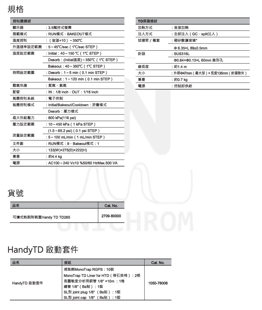 HandyTD TD265 規格/貨號/啟動套件